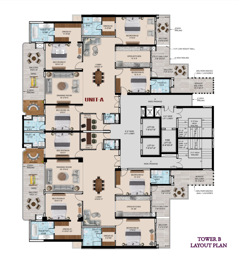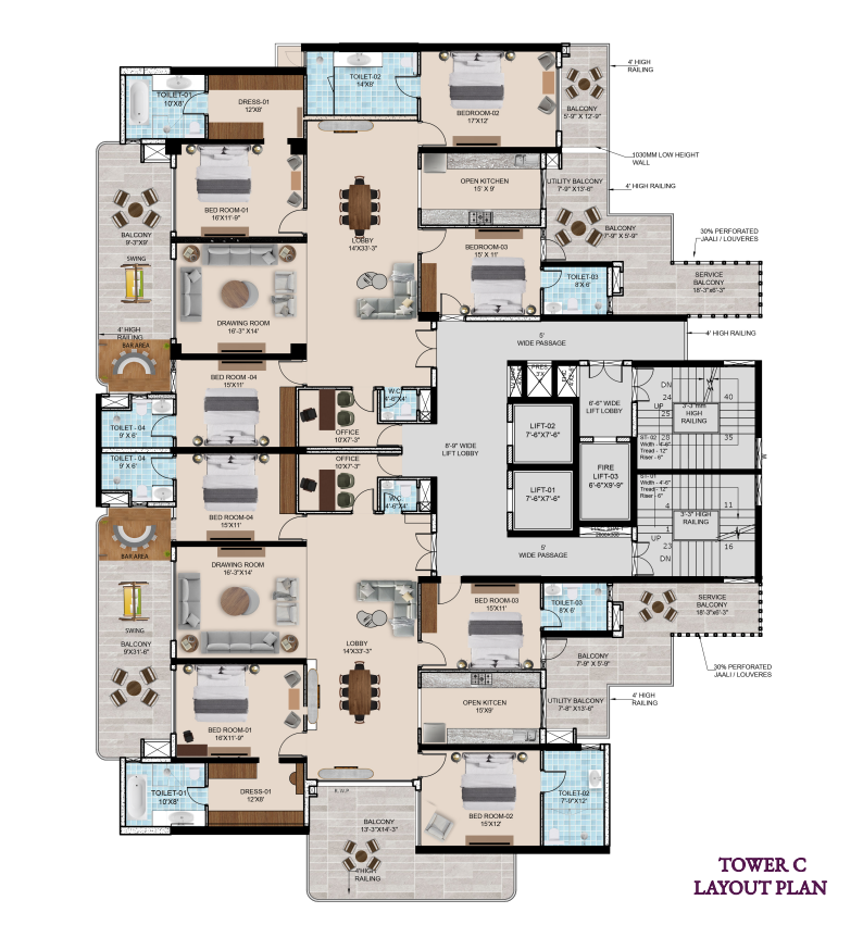 Maintainance Offices, taff/ Maid Washrooms/ Changing Rooms, Guard Washrooms, Driver Dormitories with Washrooms